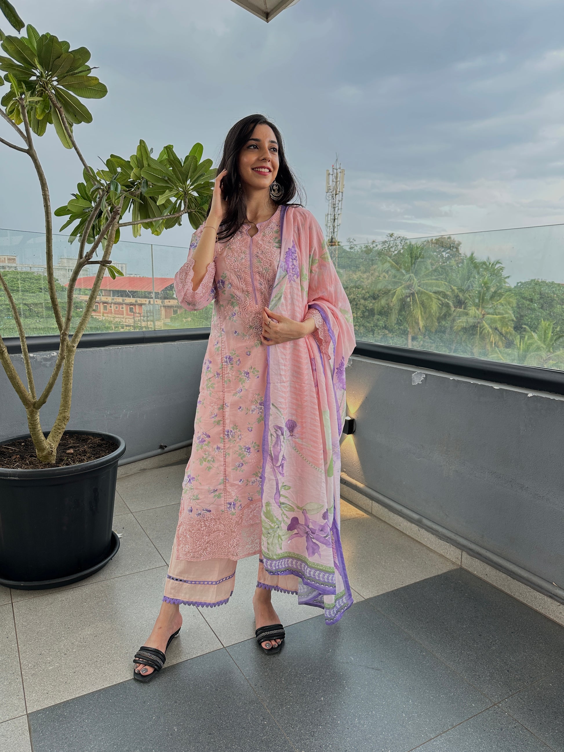 Baby Pink Floral Lawn Straight Cut Suit