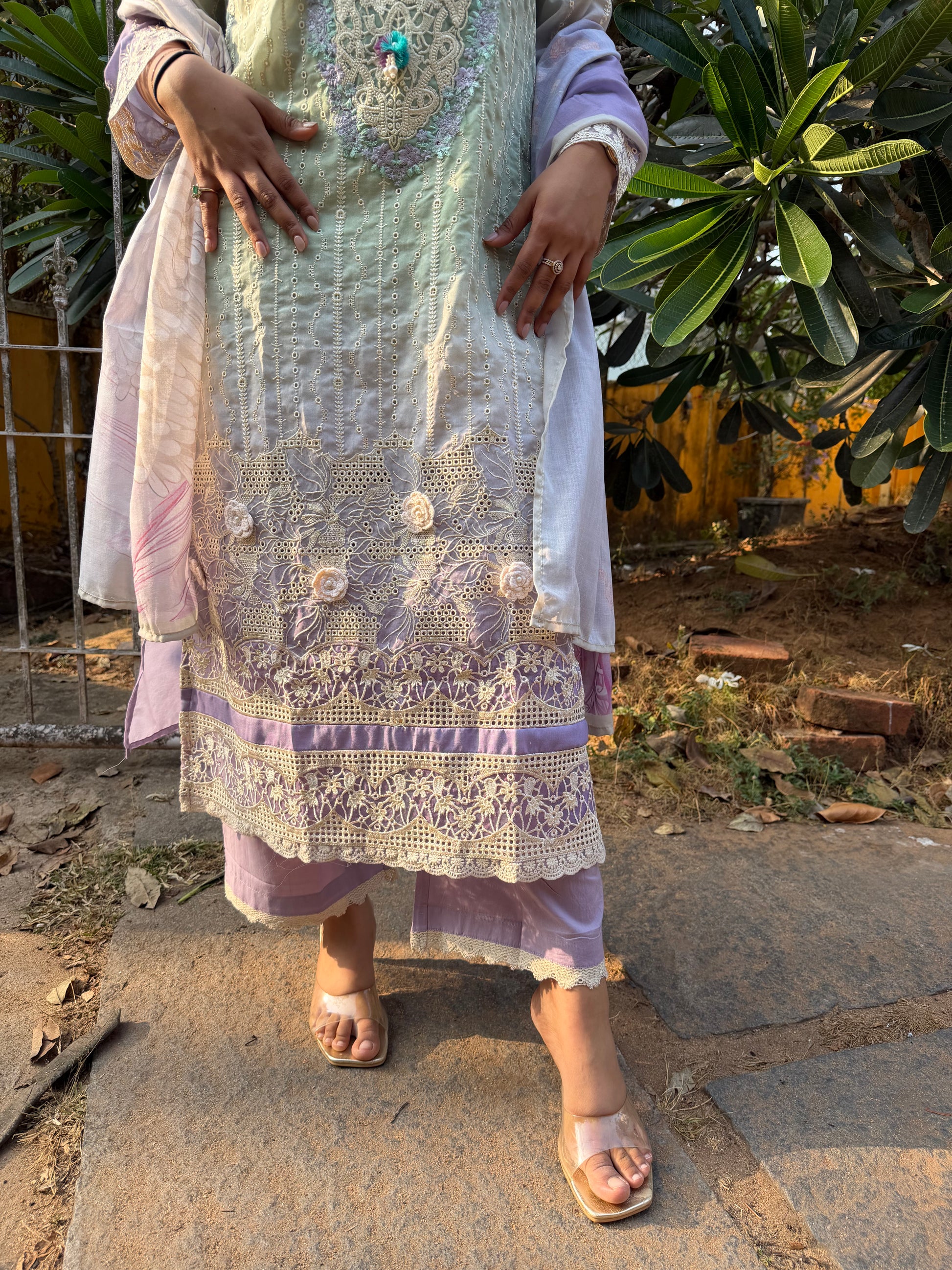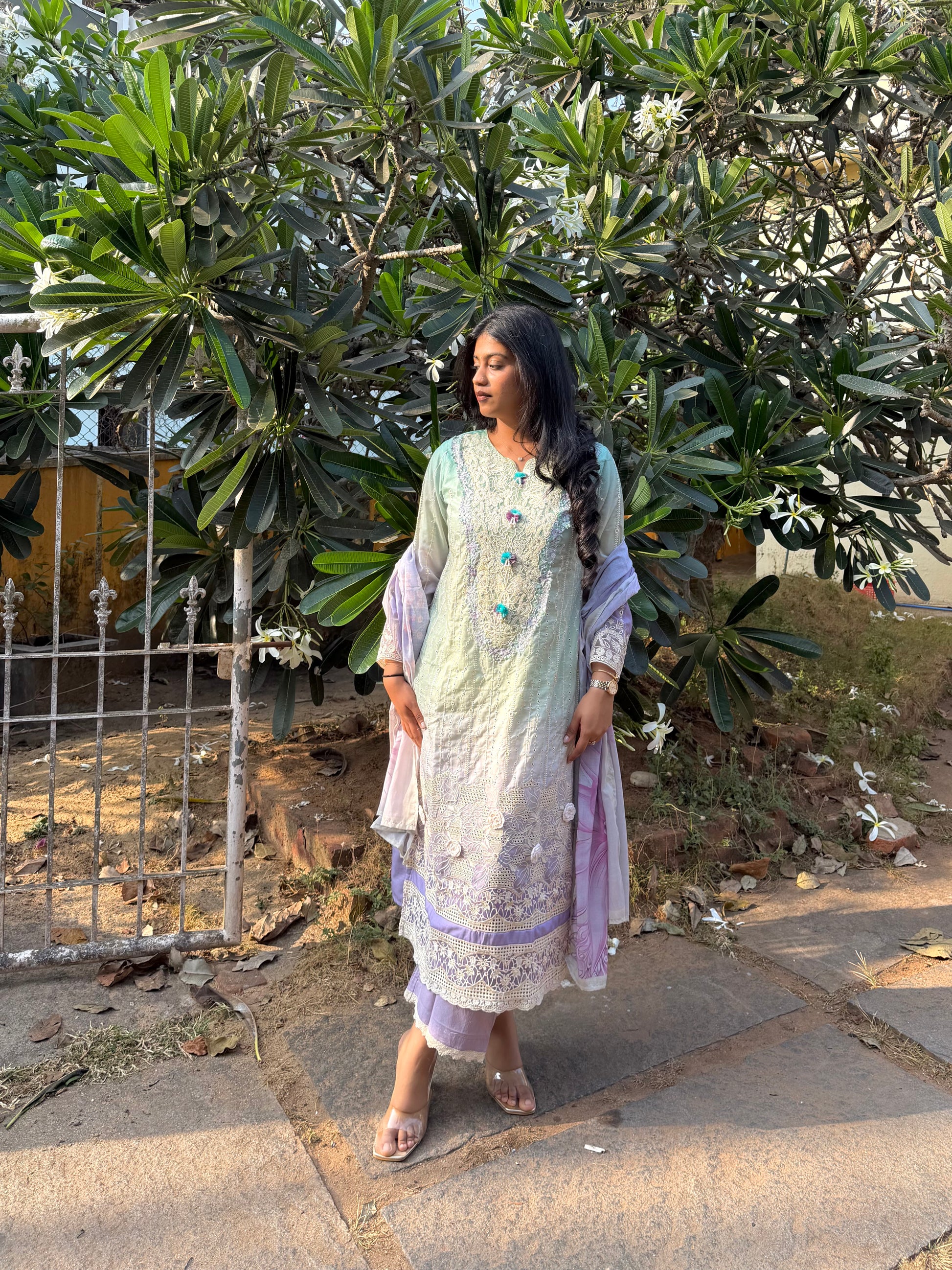 GREEN COTTON STRAIGHT KURTA WITH PANT AND DUPATTA